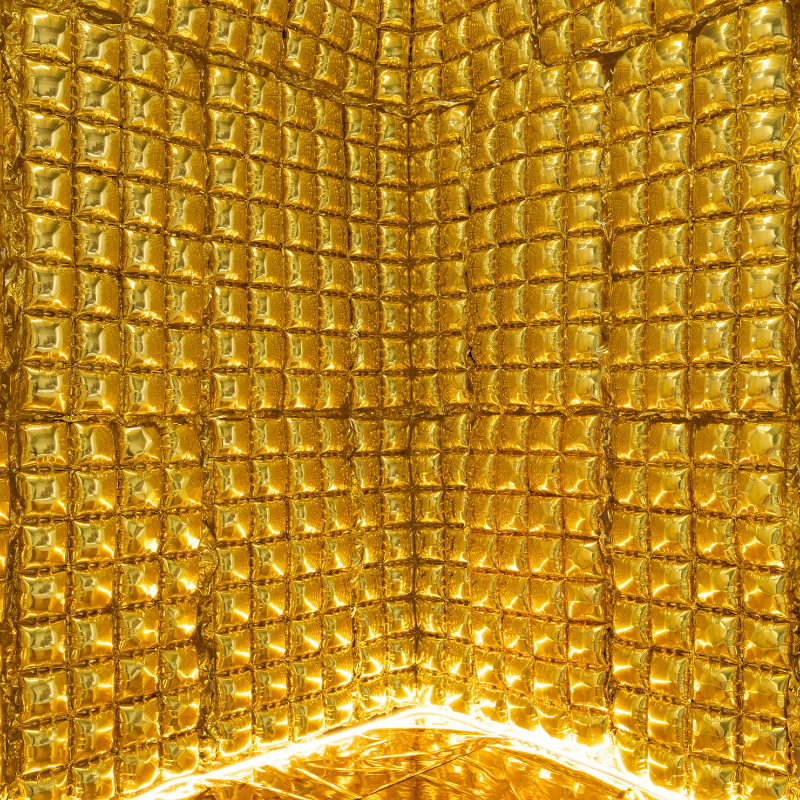 Balonska folijska pozadina za dekoriranje prostora i fotografiranje, zlatna. Dimenzije: 72x143 cm (nenapuhano), odnosno 55x110 cm (napuhano).
