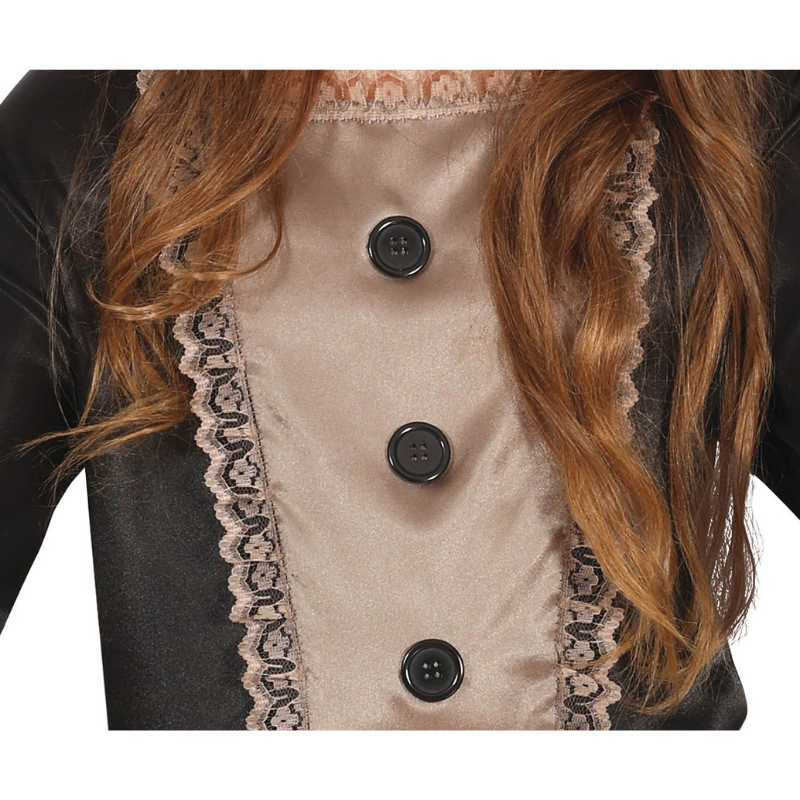 Kostim mračna lutka za djevojčice uključuje haljinu i rajf s mašnom.