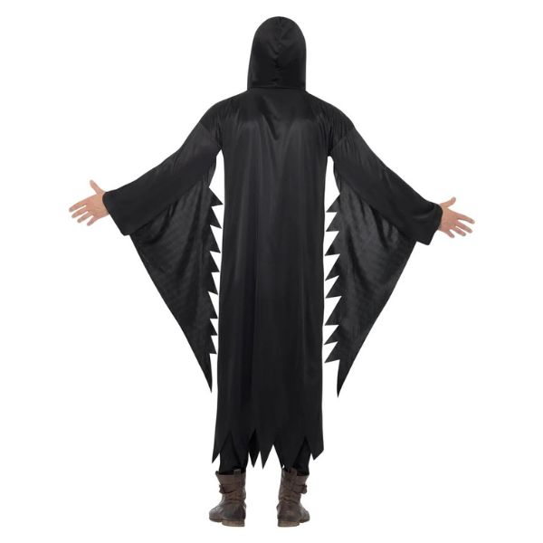 Screamer kostim uključuje crni dugi ogrtač i kapuljaču, inspiriran klasičnim horor likom. Savršen za Halloween, horor tematske zabave ili karneval. Lagani materijal omogućuje lako nošenje, dok zastrašujući dizajn stvara jeziv i efektan izgled.