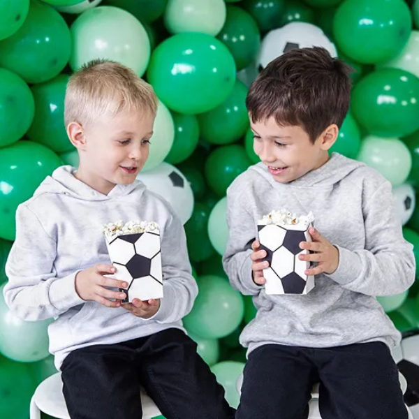 Pakiranje sadrži 6 papirnatih posudica Nogomet za kokice i grickalice, dimenzija nakon sklapanja 7x7x12cm.