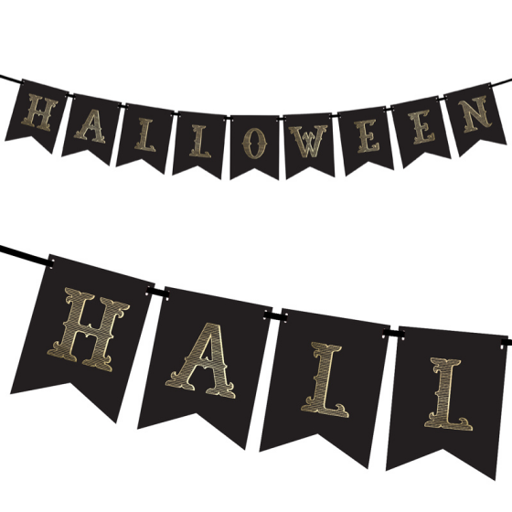 Crni papirnati natpis Halloween, DIY proizvod - sastavljate ga sami! Set sadrži slova i približno 2.5 m vrpce za vješanje. Dimenzije sastavljenog proizvoda: visina 20 cm, dužina 175 cm.