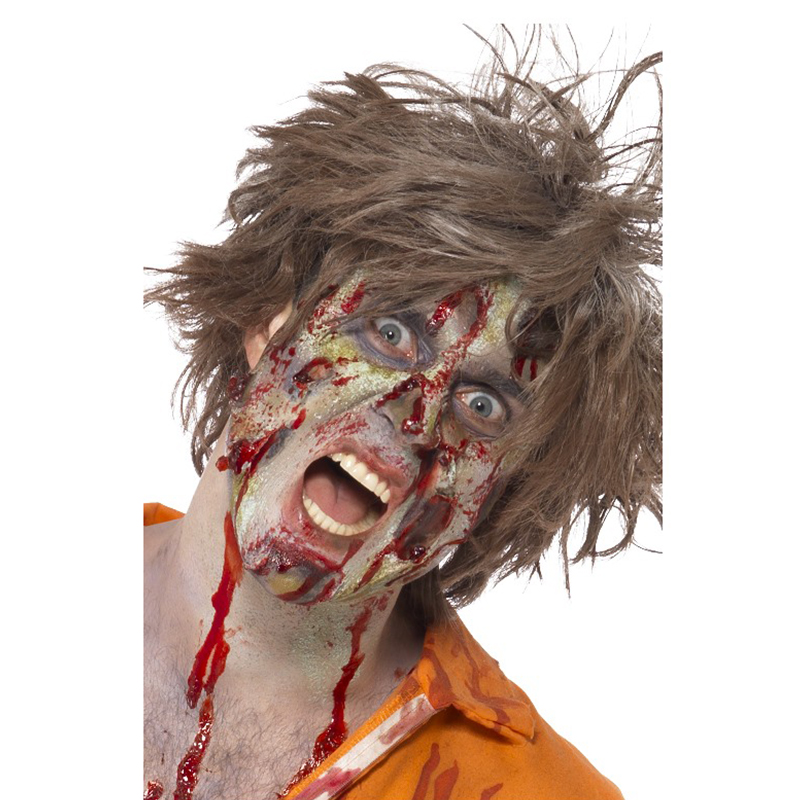 Zombi set. U paketu ćete dobiti komplet za transformaciju lica u zombija. U paketu se dobije: paleta sa 4 boje – crna, smeđa, siva i zelena (4 × 1,8 g), crna olovka, tubica sa umjetnom krvi, tekući lateks, krv u gelu, tekućina za horor meso, 3 kapsule sa umjetnom krvi, te spužvica za nanošenje šminke, četkica i slikovne upute. (dodaci nisu uključeni)